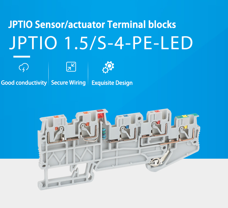 سي / بنفايات / CQC / ISO 9001JPTIO1.5/S/4-PE-LED(24V) كتلة طرفية لمشغل الاستشعارتعمل تقنية الاتصال المباشر بالدفع على تقليل قوى الإدخال بنسبة تصل إلى 50 بالمائة، كما تتيح الأسلاك الخالية من الأدوات إمكانية إدخال الموصلات بسهولة وبشكل مباشر.مصنوعة من نايلون مثبطات اللهب الهندسي PA66 مع معدن لولبي نحاسي. مصنوعة من نايلون مثبطات ا......