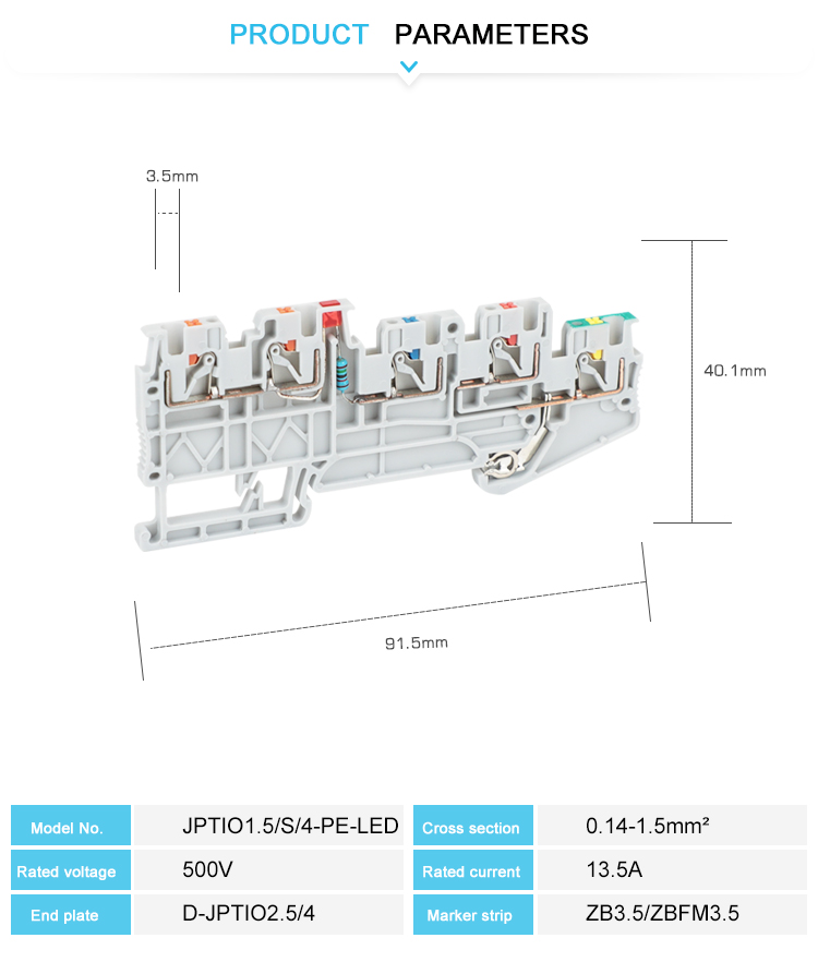 مصنوعة من نايلون مثبطات اللهب الهندسي PA66 مع معدن لولبي نحاسي. مصنوعة من نايلون مثبطات اللهب الهندسي PA66 مع معدن لولبي نحاسي. تتميز الكتل الطرفية للاتصال بالدفع بأسلاك موصلات سهلة وخالية من الأدوات مع حلقات أو موصلات صلبة. يتيح التصميم المدمج والاتصال الأمامي توصيل الأسلاك في مساحة محدودة. بالإضافة إلى مرفق الاختبار في عمود الوظيفة المزدوجة، توفر جميع الكتل الطرفية اتصال اختبار إضافي. مع قدم عالمية يمكن تثبيتها على Din Rail NS 35.It يمكن توصيل موصلين بسهولة، حتى المقاطع العرضية الكبيرة للموصل لا تمثل مشكلة. يمكن أن يستخدم التوزيع المحتمل الكهربائي الجسور الثابتة في مركز المحطة. جميع أنواع الملحقات: الغطاء النهائي، سدادة النهاية، لوحة التقسيم، رحلة العلامة، الجسر الثابت، جسر الإدراج، إلخ.