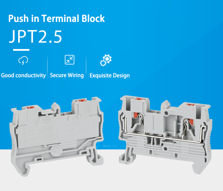 us-in jpt 2.5 block كحل اتصال كهربائي خالي من الأدوات ، يحتاج المستخدمون فقط إلى دفع الكبل لإنشاء دائرة مستقرة. JPT 2.5 الكتلة الطرفية كتلة طرفية JPT 2.5 مصنوعة من مادة بلاستيكية أو معدنية من الدرجة الهندسية ذات المقاومة العالية للدرجات الحرارة ومقاومة التآكل لضمان تشغيل متينة وموثوقة في بيئات متعددة.