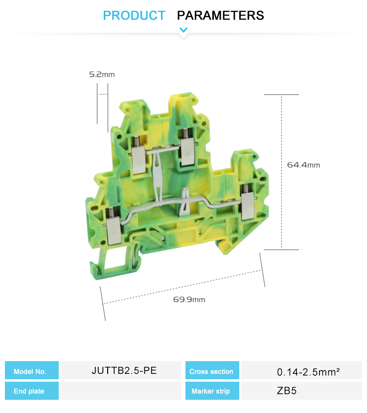 كتل طرفية برغي بلاستيكي ، أنواع قضبان Din ، فتيل JUK 2.5 مللي متر